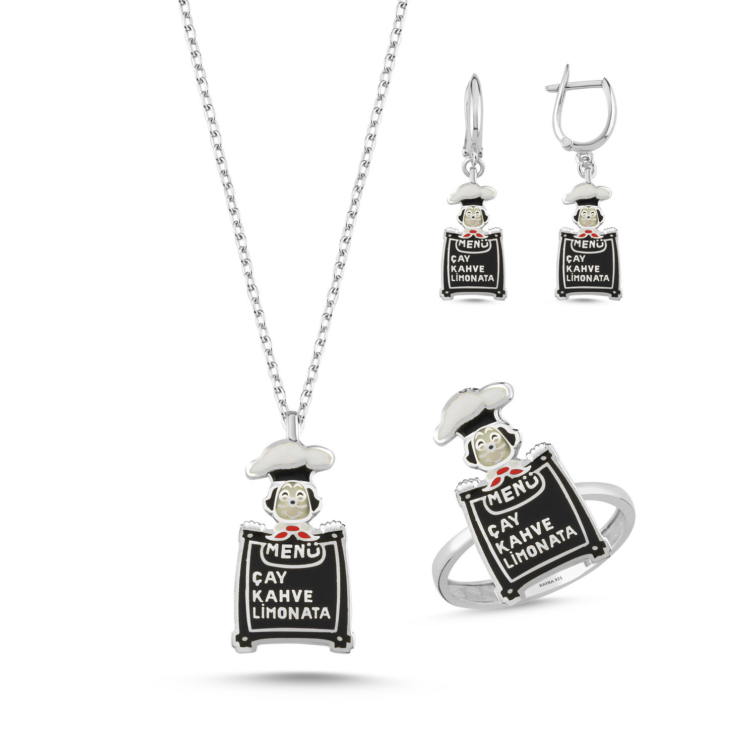 | * Gümüş (925 ) damgası bulunmaktadır. Takımımız kolye, küpe ve yüzükten oluşmaktadır. Zincir uzunluğu standart 45 + 5 cm'dir. | ||||||