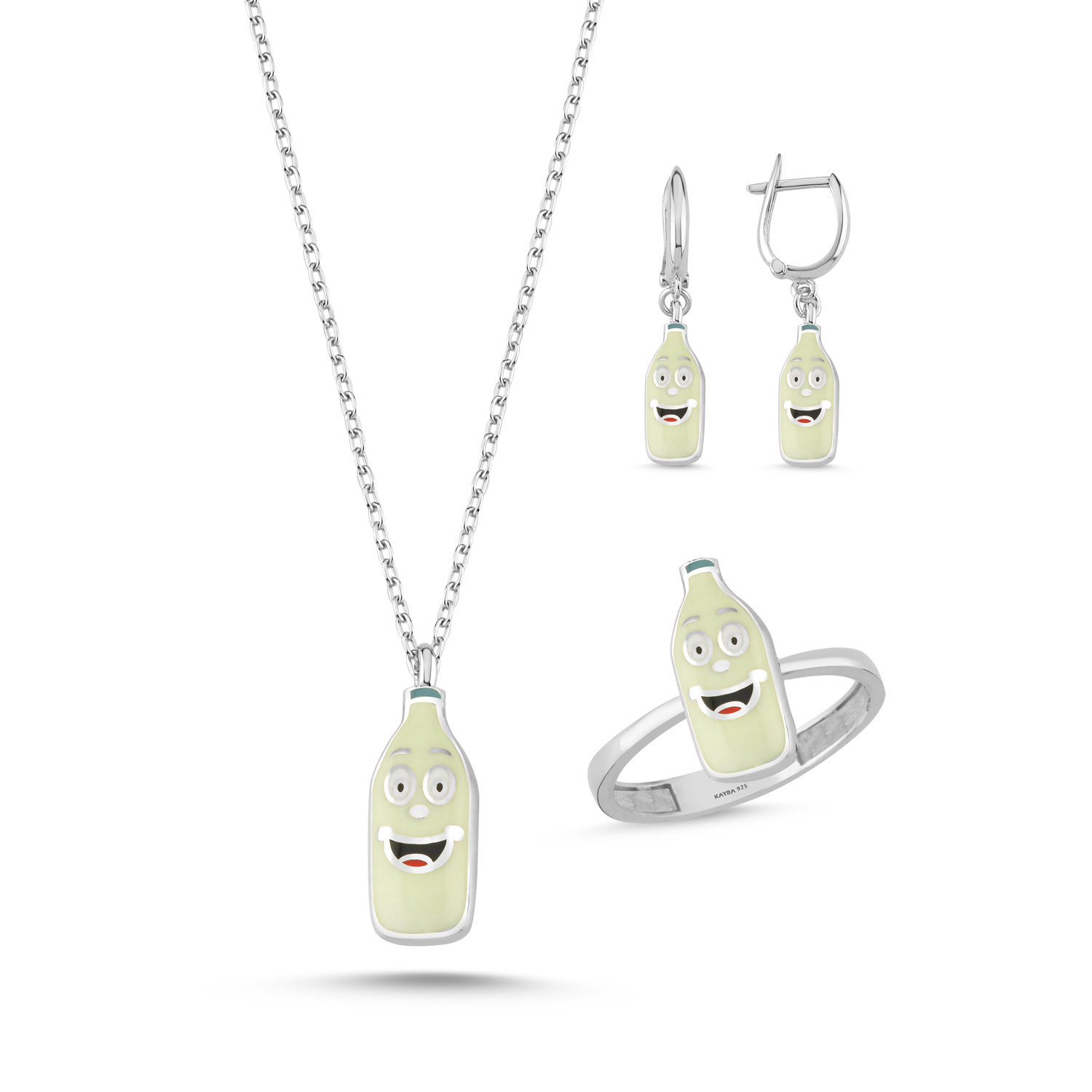 | * Gümüş (925 ) damgası bulunmaktadır. Takımımız kolye, küpe ve yüzükten oluşmaktadır. Zincir uzunluğu standart 45 + 5 cm'dir. | ||||||